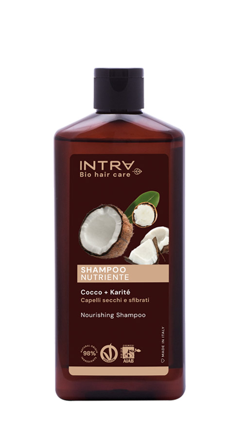 The Organic and VeganOk nourishing shampoo with Coconut oil and Shea butter extract repairs and nourishes hair. The delicate formulation with over 98% of natural ingredients is particularly suitable for dry and brittle hair.